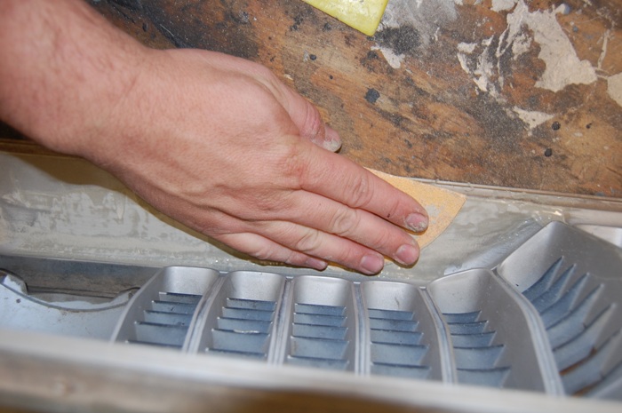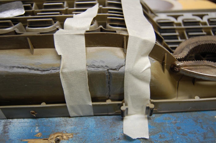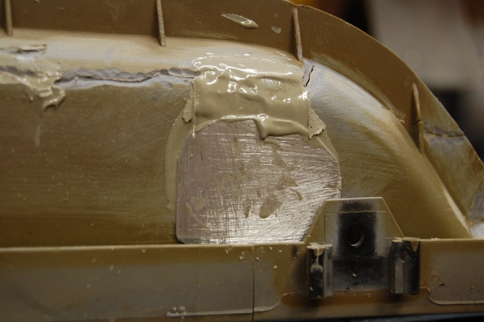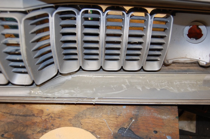 I carefully disassembled the lenses and saved the gaskets. They were "good enough". I mean, this car won't see a lot of downpours or salt anyway... Took a die grinder to the crack and made something for the epoxy to grab onto. The product: SEM 69767 Problem Plastic Repair Material. The gun is expensive, and not necessary with the smaller tubes of epoxy. I figure we'll use this stuff again, though. For the worst part of the crack, I applied epoxy, then sunk a piece of sheet metal into it. The sheet metal is also roughed up on both sides for some tooth. Then the sheet metal and rest of the crack get glued up. Once that cured, I filled the exterior side. This is sanded about halfway. The epoxy does not sand as easily as Bondo, but it's not awful. After sanding the epoxy, I applied some spot glaze and sanded it smooth, then comes paint. Now THAT'S a major pain! |